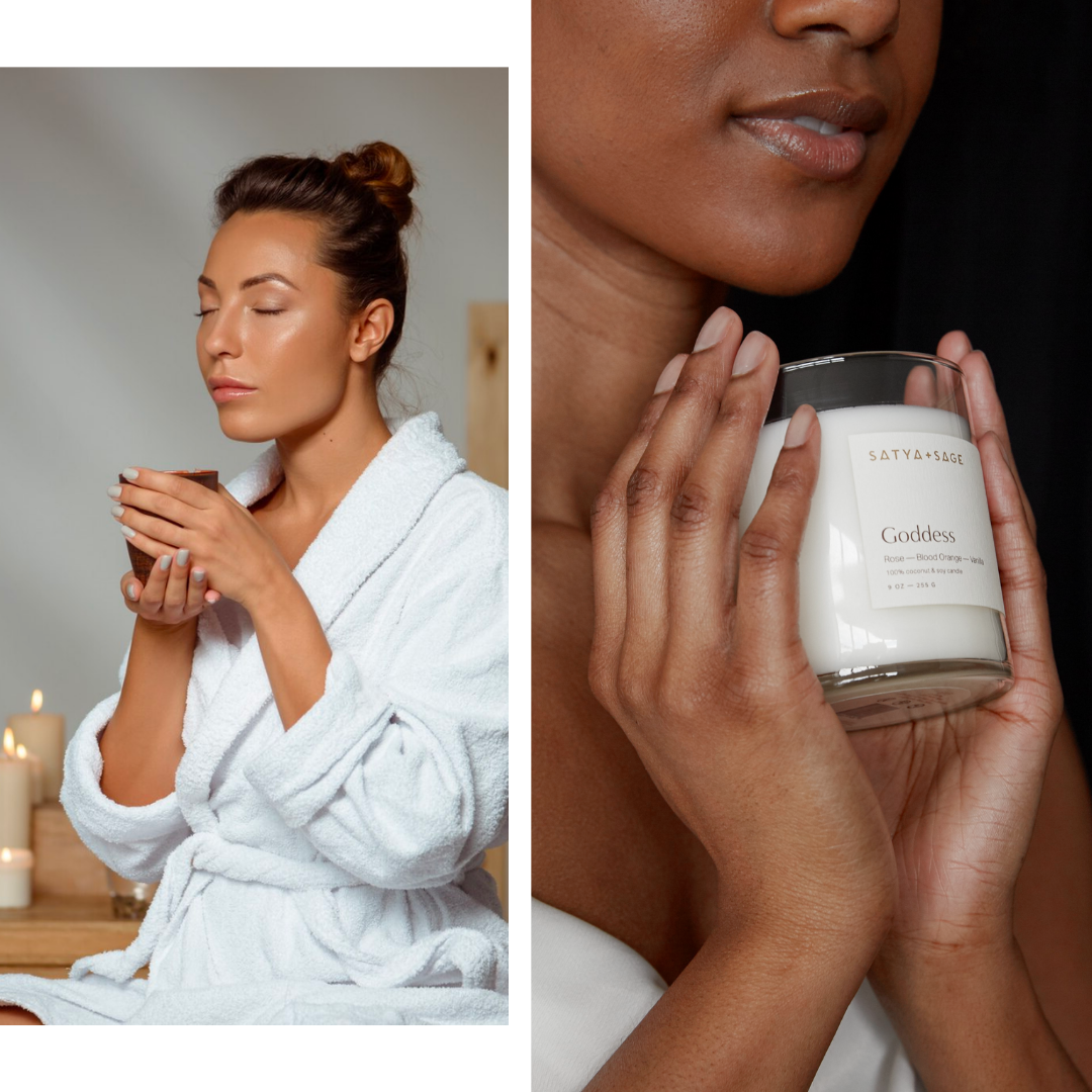 100% soy wax candle in minimal, elegant packaging.